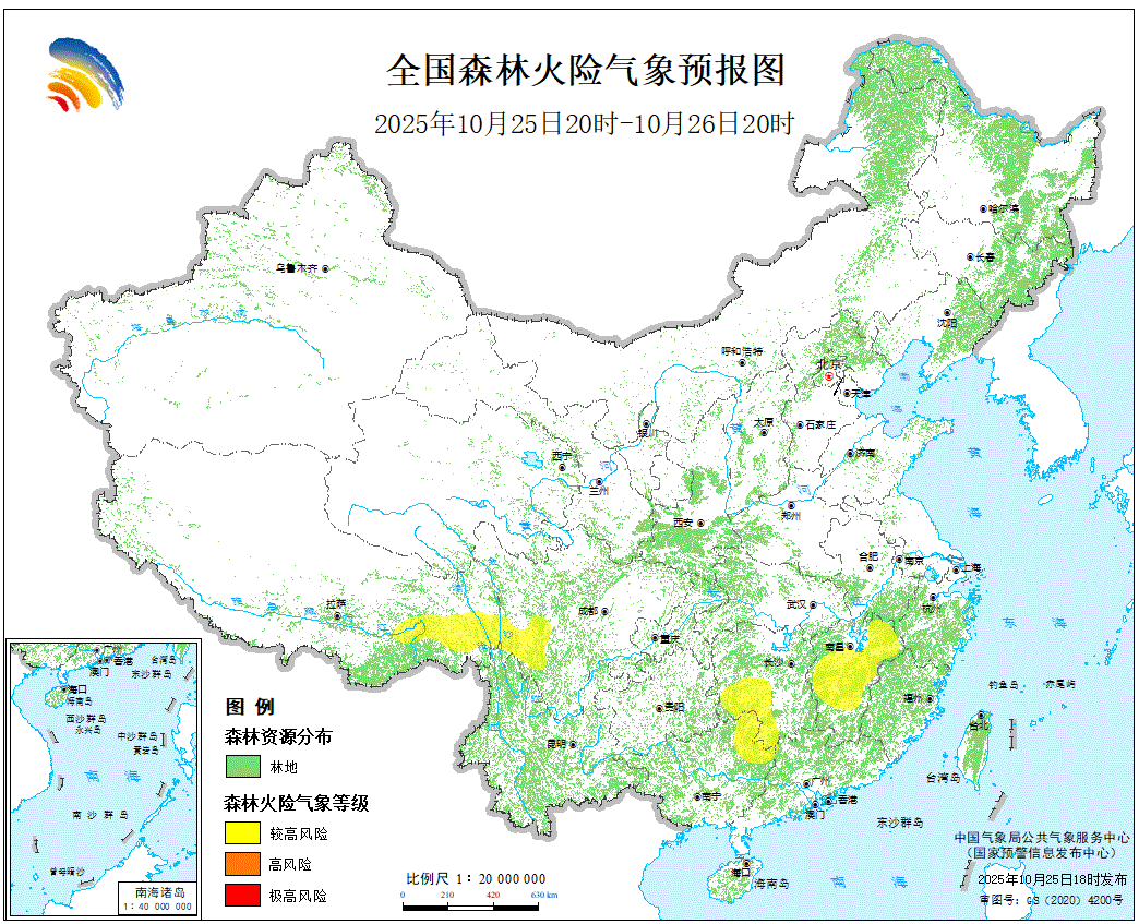 中国气象局公共气象服务中心(国家预警信息发布中心)10月25日18时发布森林火险气象预报