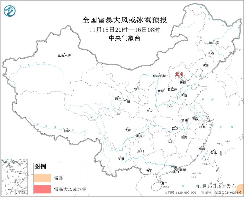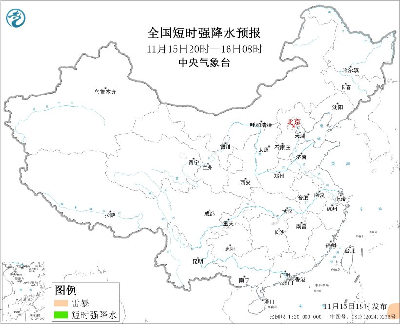 预计11月15日20时至16日20时,全国范围无明显强对流天气。